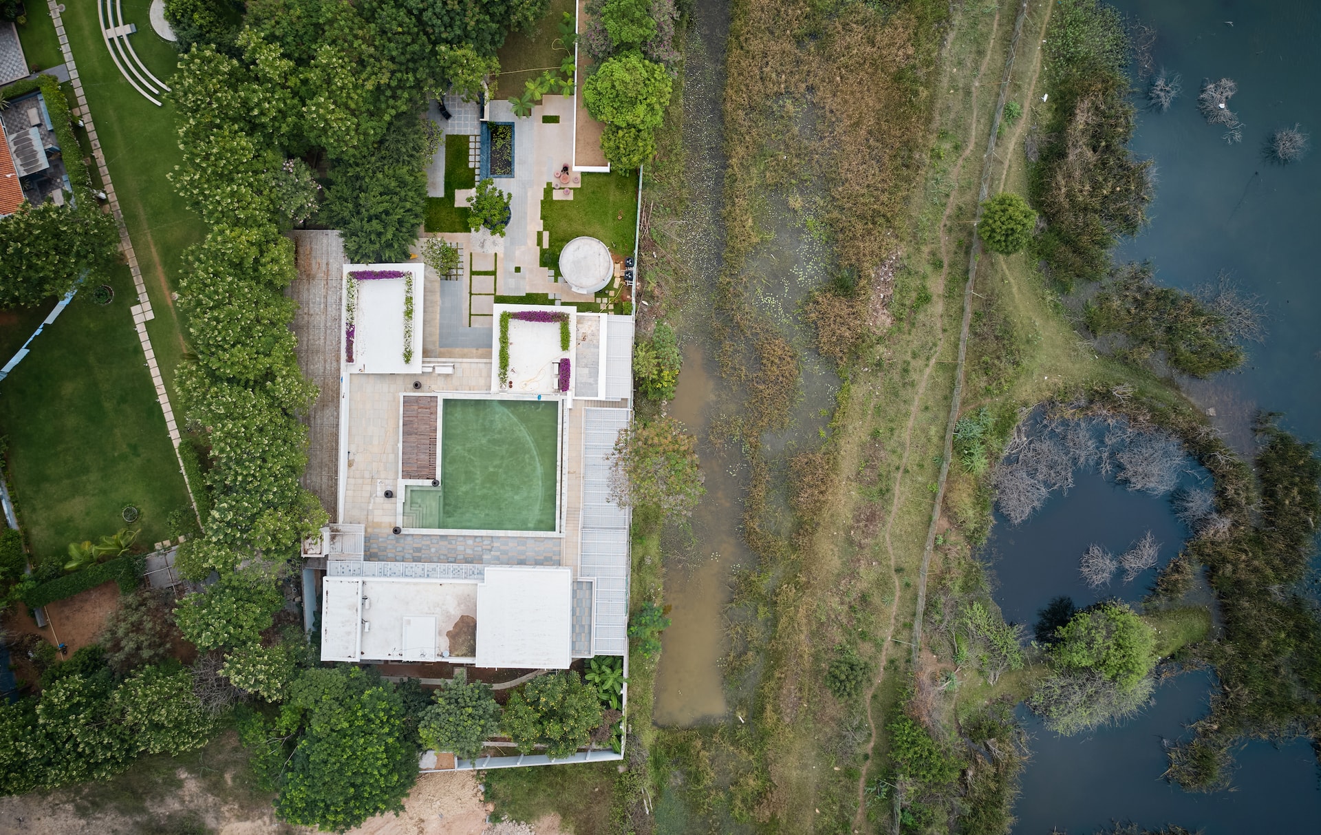 Spatial fluidity defines the architectural language of the home, where boundaries between the interior and exterior dissolve into a seamless continuum. The dining deck, extending towards the water’s edge, appears to levitate above the shimmering surface, especially during the monsoons when the landscape transforms into an ethereal dreamscape.