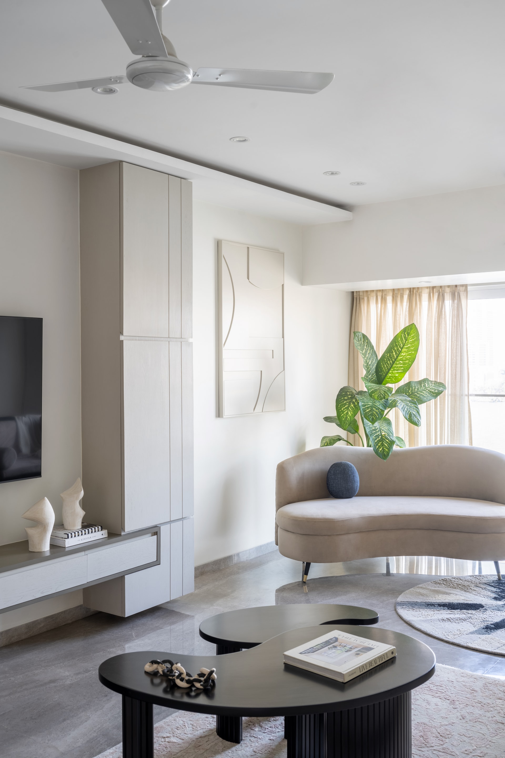 Nestled in the heart of Mumbai’s bustling Cuffe Parade, ‘Tidal Serenity’ by Niharika Saraf of Polka House reimagines coastal living. This serene sanctuary seamlessly blends architectural ingenuity with the calming essence of the sea. With panoramic ocean views as its backdrop, the residence epitomizes the harmonious coexistence of nature and design, crafting an inviting, light-filled retreat for a middle-aged couple whose children frequently visit. Through a thoughtful transformation, Saraf creates not merely a home but a haven that celebrates connection, tranquility, and understated luxury.