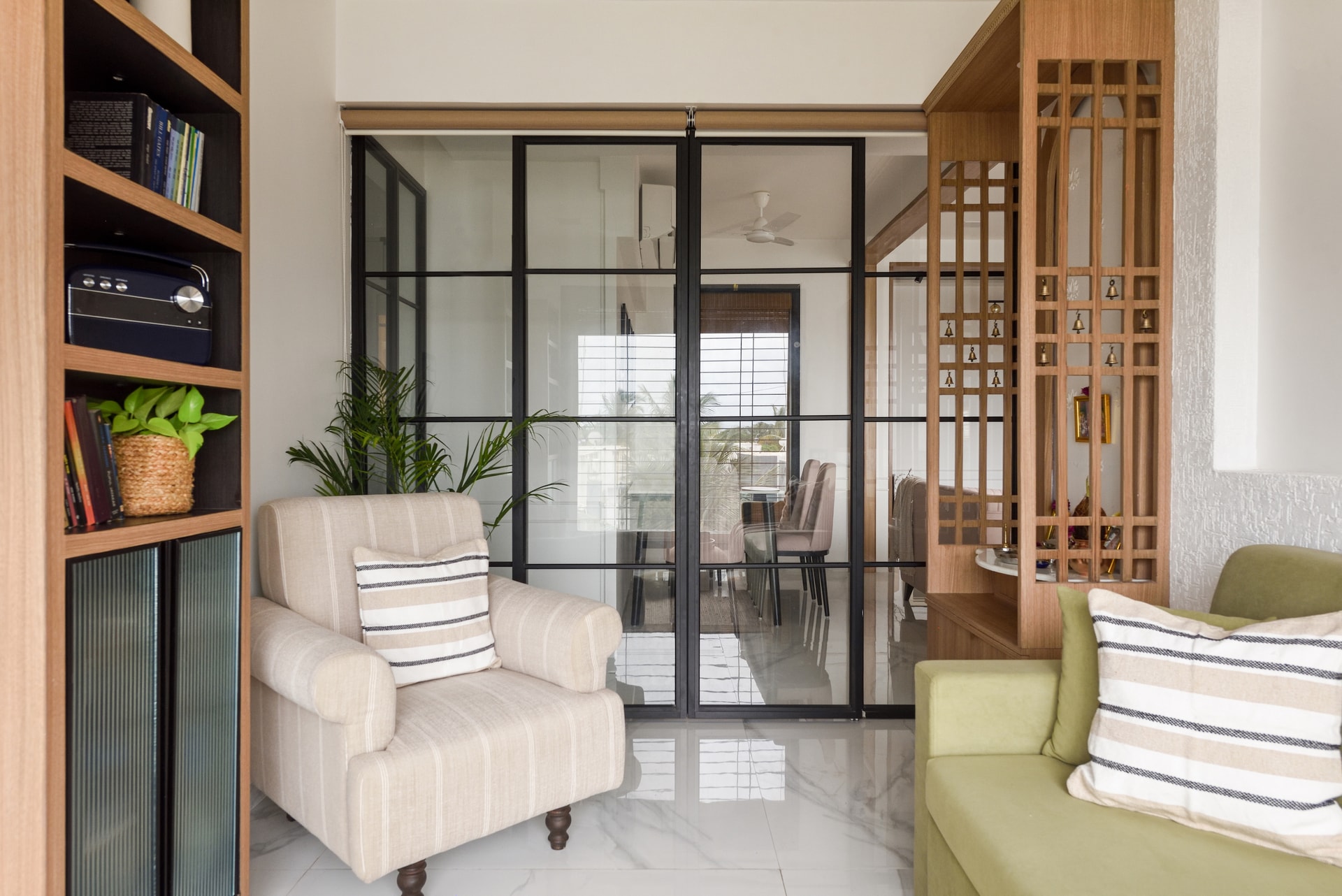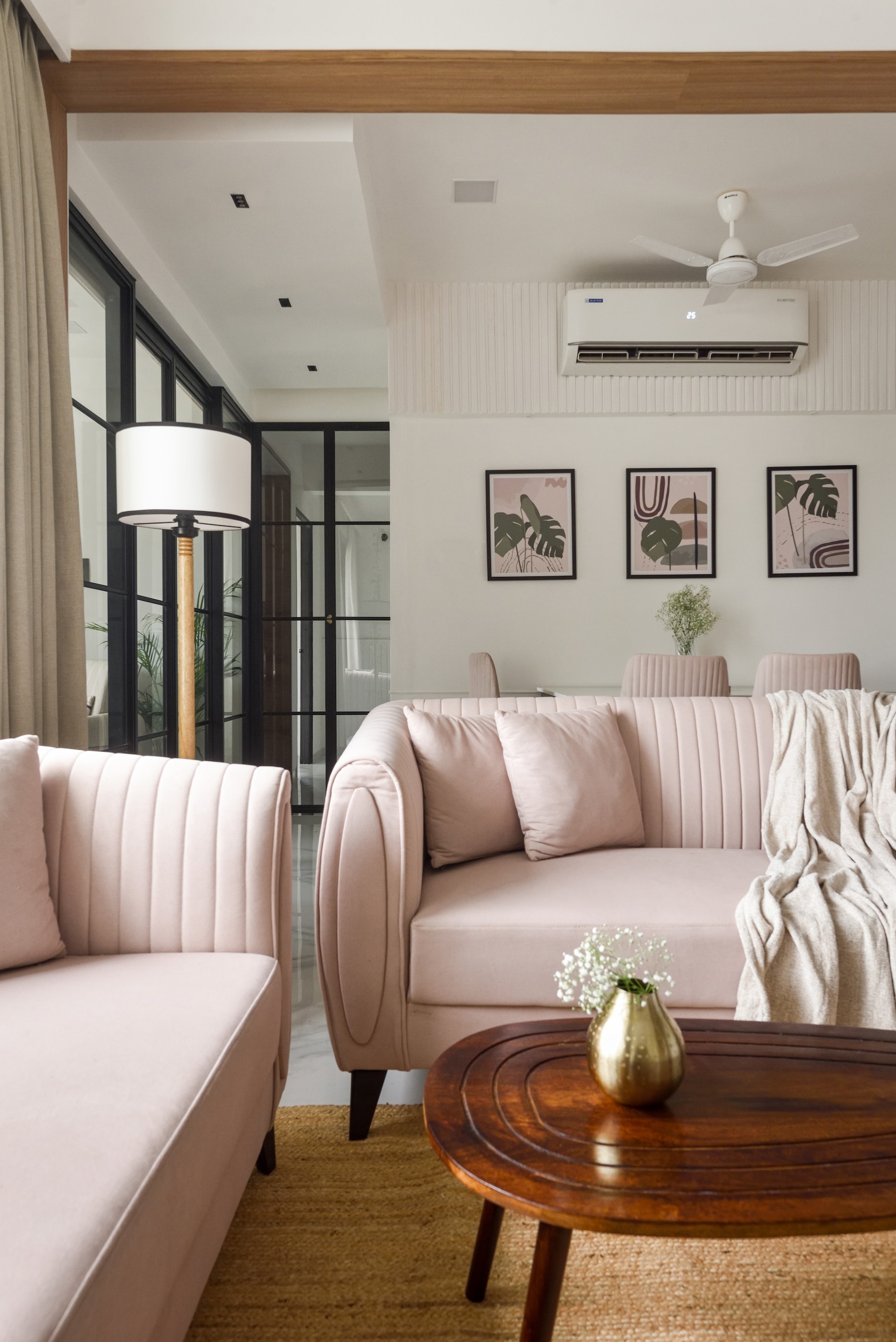 From the outset, D+U Architects approached the challenge of this residence with a keen eye for detail and a deep understanding of the client’s desires. The apartment, surrounded by the imposing mountains of Palghar, initially struggled with limited natural light. The design team’s solution was both strategic and poetic: by removing a common wall between the living room and an adjacent bedroom, they introduced an expansive sense of openness and light. This design intervention not only maximised the flow of natural light but also enhanced spatial continuity, embracing the Japandi ethos of functional simplicity and unobtrusive elegance.