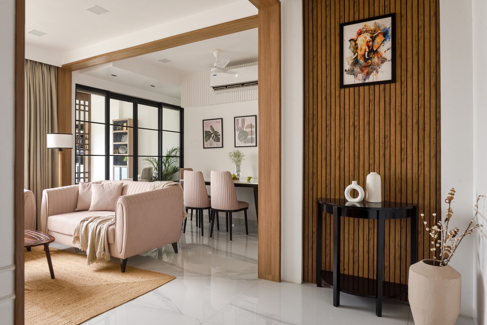In the lush, green landscape of Palghar West, Maharashtra, a unique design narrative unfolds within the confines of a 930 sq. ft. apartment, deftly transformed by the visionaries at D+U Architects. Titled “Apartment on the Fourth,” this project exemplifies the seamless fusion of Japandi and Scandinavian design philosophies—a harmonious blend that marries minimalist elegance with inviting warmth. The apartment, designed for a discerning couple and their globetrotting daughter, offers more than just a living space; it provides a tranquil retreat from the frenetic pace of daily life.
