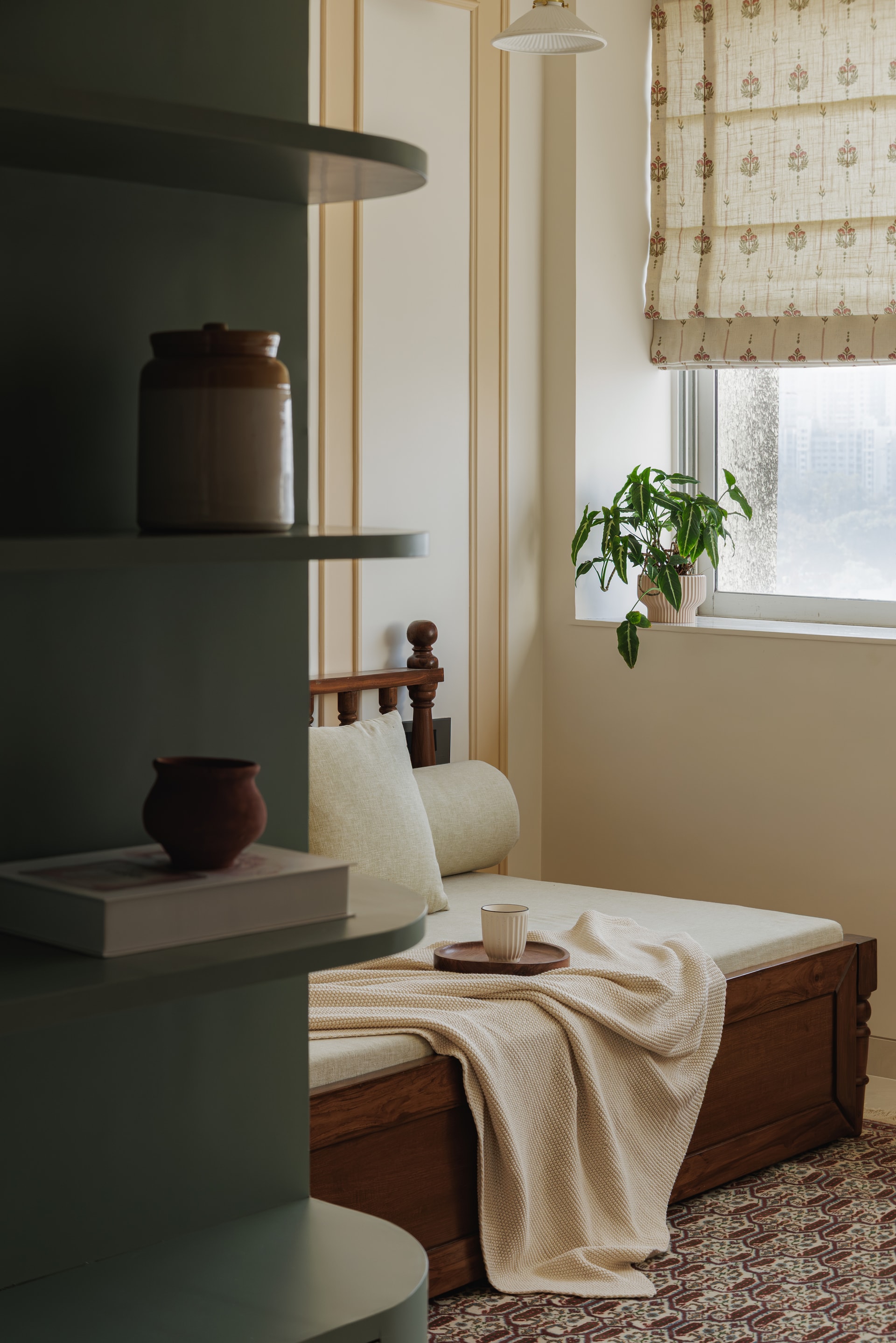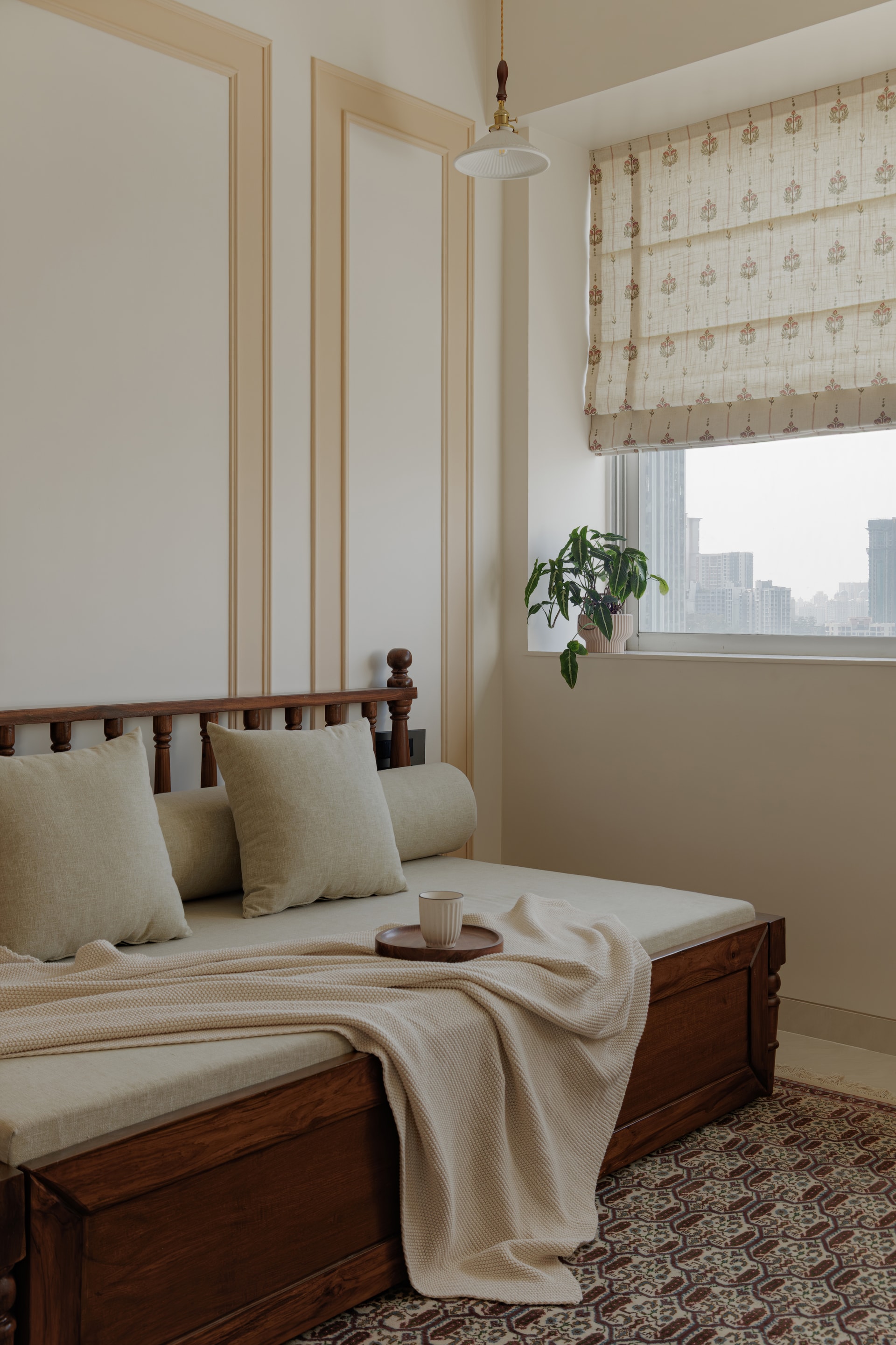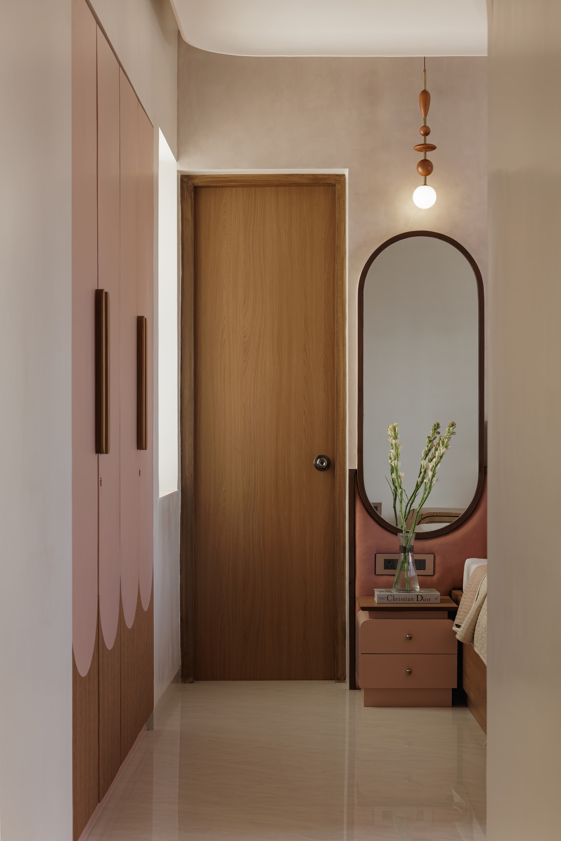 Asakta is a 770 sq. ft. apartment in Kanjurmarg, Mumbai, envisioned as a quiet yet expressive home that bridges contemporary living with deeply rooted Indian traditions. Designed by Insidestory Studio, the project reflects a thoughtful approach to compact urban living, where restraint, warmth, and craftsmanship take precedence over excess. Rather than leaning into overt nostalgia, the design draws from familiar cultural references and reinterprets them through a clean, modern vocabulary, resulting in a home that feels timeless, personal, and effortlessly liveable.