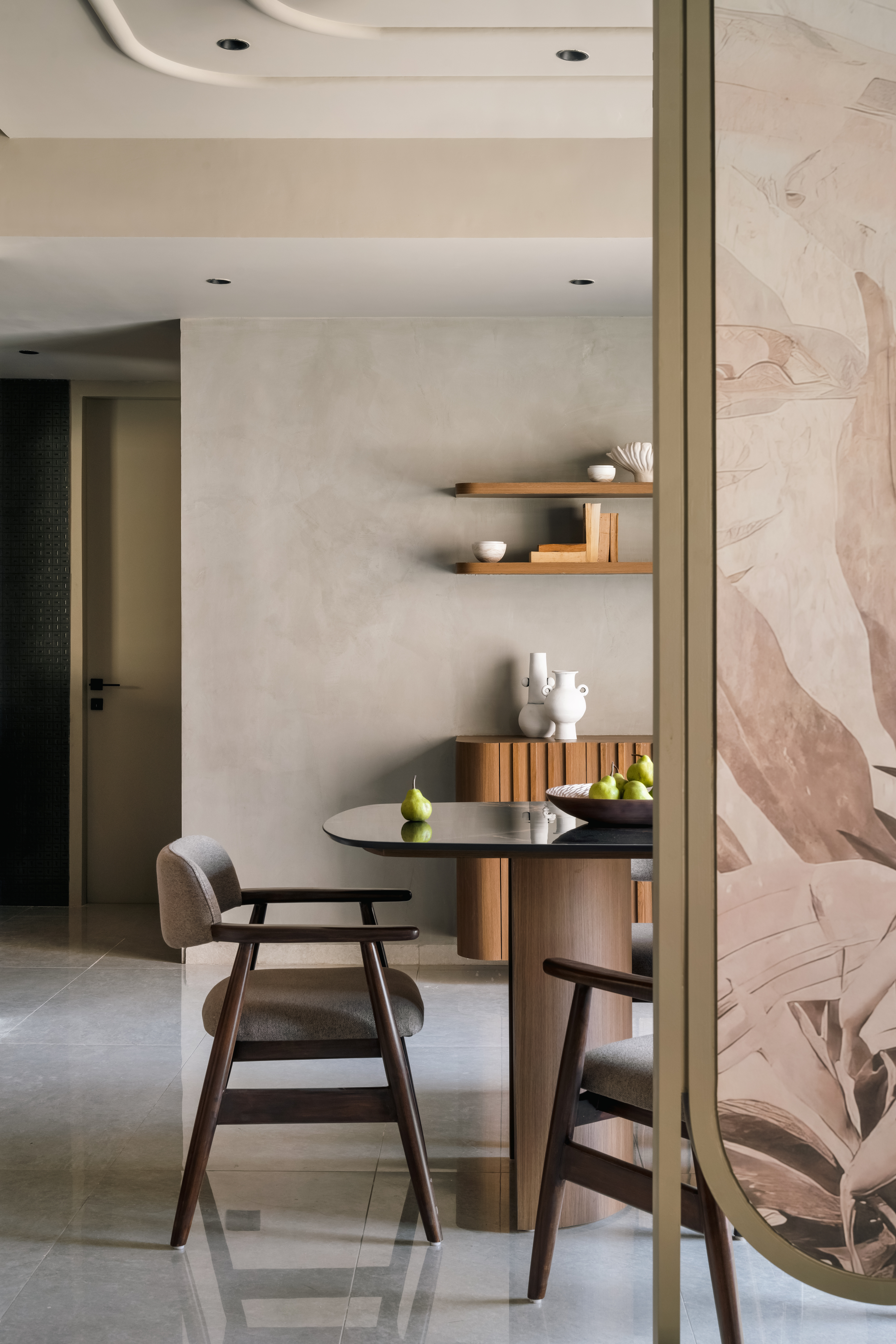 Beyond its visual elegance, the project’s true strength lies in its thoughtful spatial planning. Every room flows effortlessly into the next, creating a rhythm that feels organic and uncluttered. Furniture layouts are strategically designed to enhance comfort and openness, ensuring that form and function coexist harmoniously. The inclusion of a flexible multipurpose zone further underscores the studio’s user-centric approach, crafting spaces that evolve with the homeowners’ lifestyle.