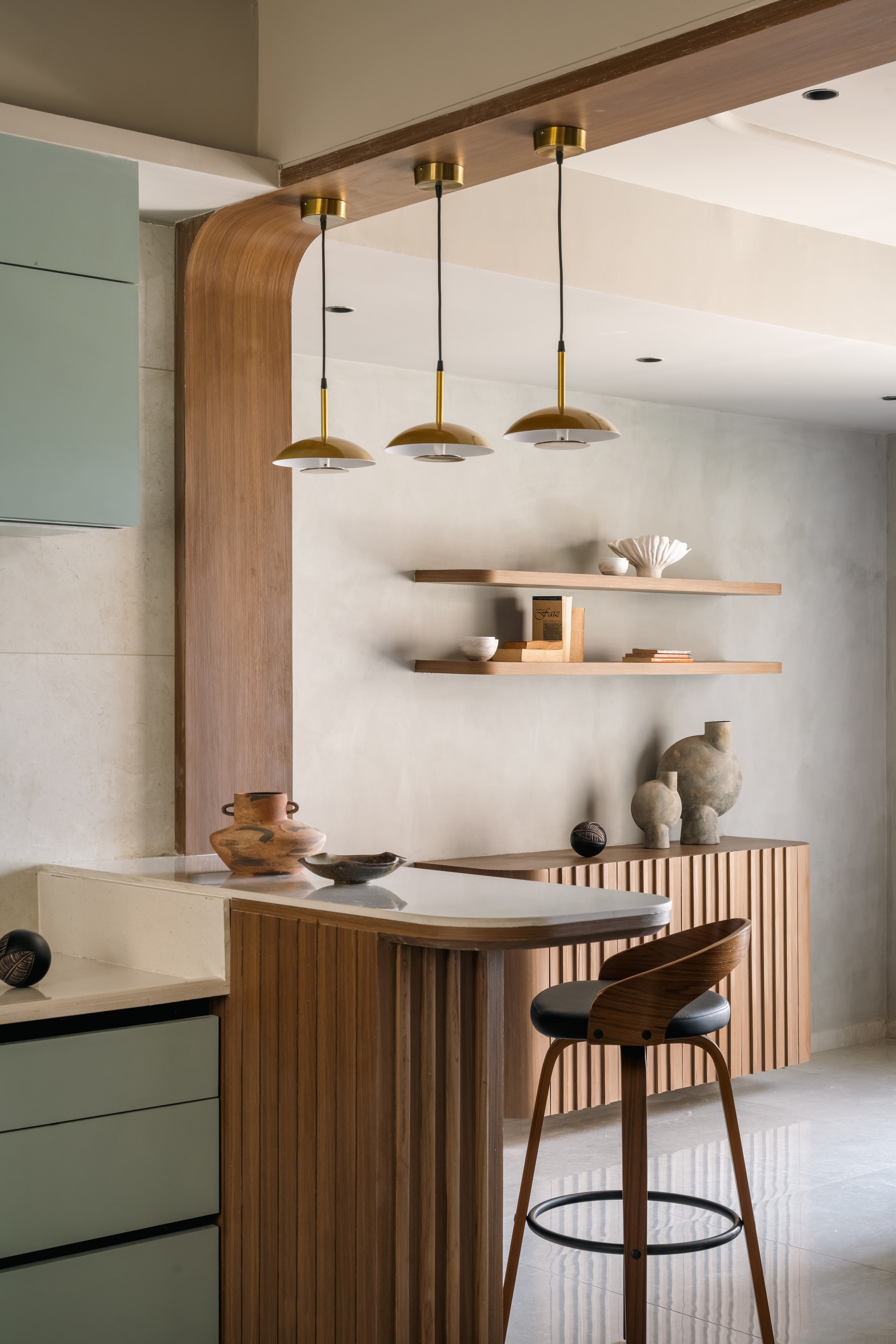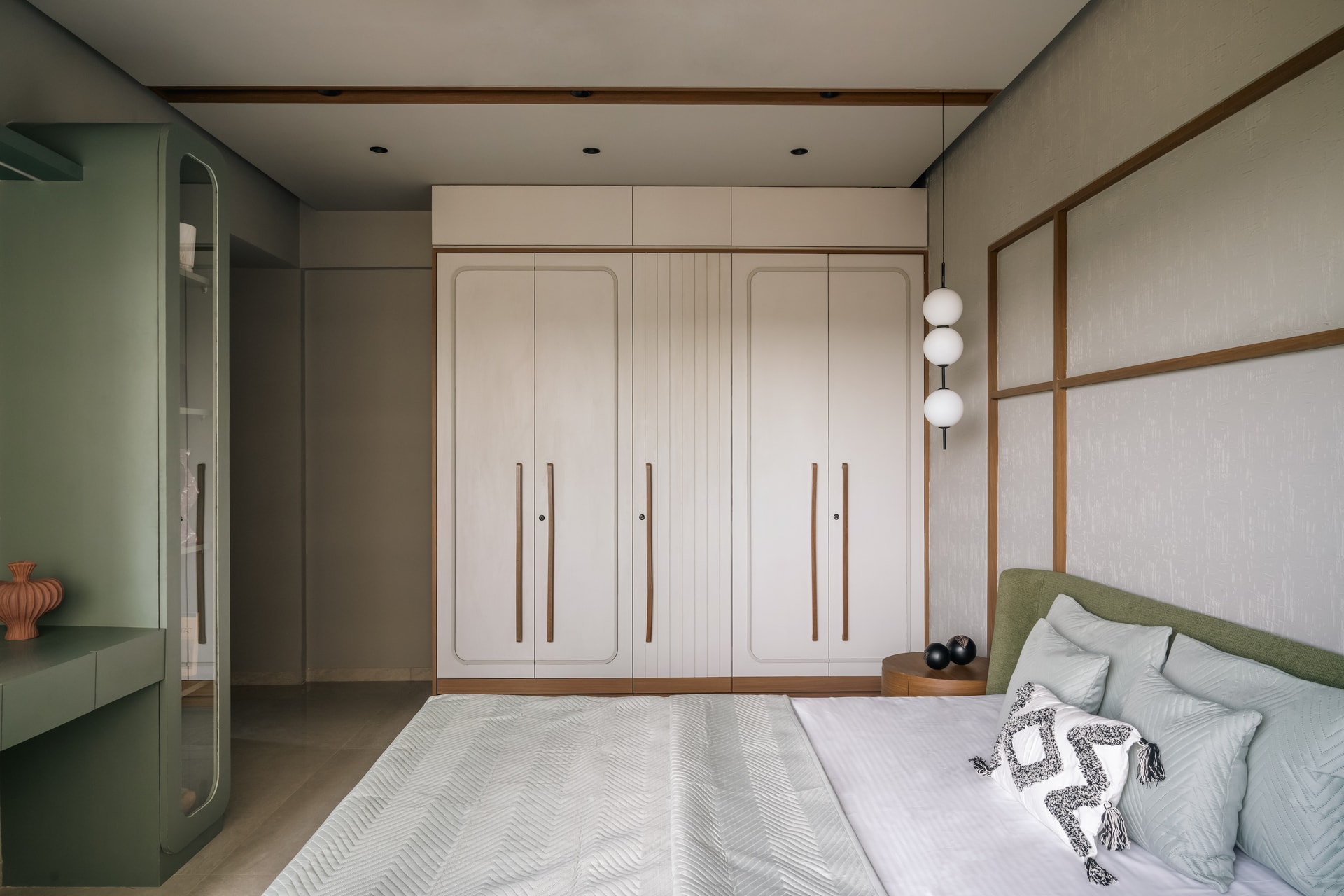 Each of the four bedrooms narrates its own story while adhering to the home’s unified design language. The master bedroom embodies tranquility, with earthy tones, layered lighting, and tactile textiles that evoke calm and contemplation. The children’s room introduces gentle playfulness, balancing joy and serenity through soft colours and smart storage that evolves with growing needs. Meanwhile, the guest bedroom remains elegantly simple, designed with neutral palettes, cozy furnishings, and minimal accents, creating a welcoming refuge.