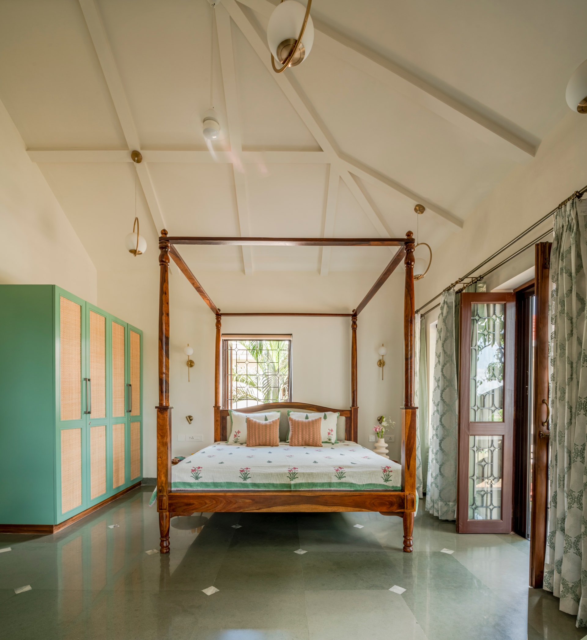 The villa’s transformation was a collaborative effort, with civil work, carpentry, painting, and polishing teams hailing from Ahmedabad, while local agencies from Goa handled steel fabrication, electrical, and plumbing work. Frequent site visits facilitated seamless coordination between diverse work cultures, culminating in a six-month project timeline.