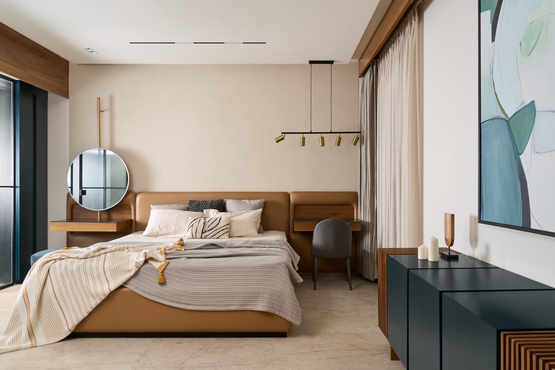 The private spaces reflect an intricate level of design consideration, with each bedroom thoughtfully crafted to embody the distinct personality and preferences of its occupants. Here, the design transforms from the collective energy of the shared living spaces into personal sanctuaries, where calm and individual expression take center stage.
