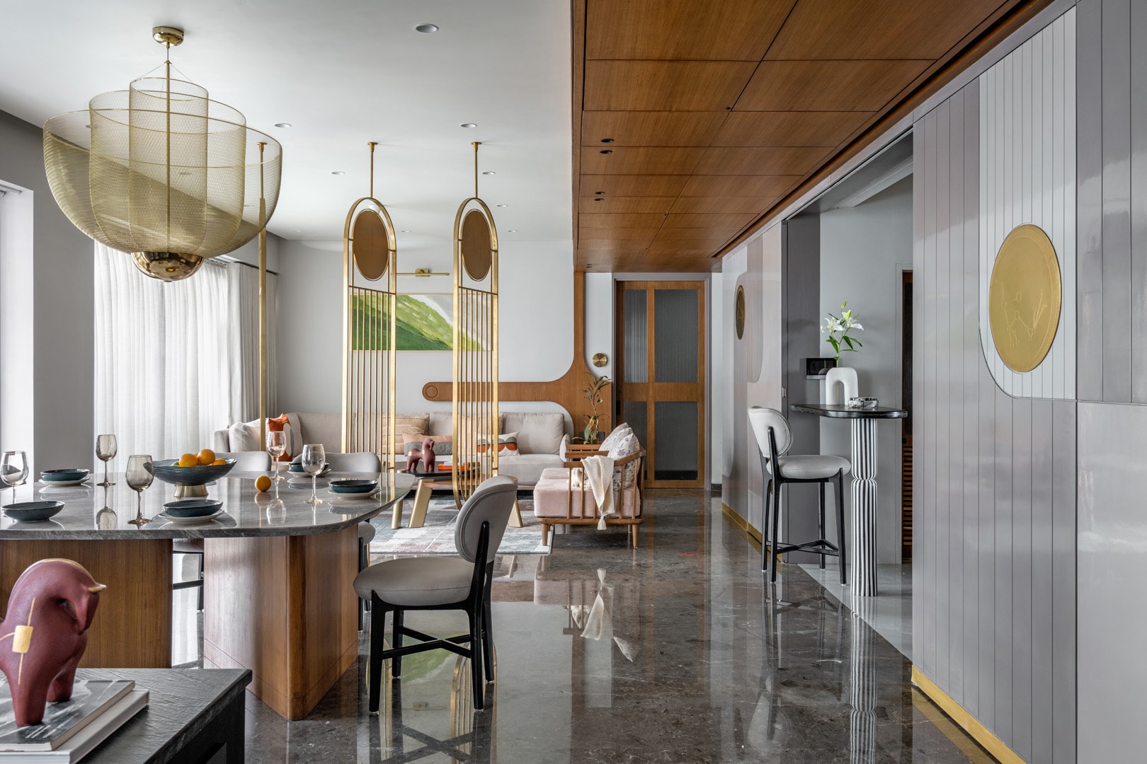 In the bustling city of Ahmedabad, where tradition gracefully intertwines with modernity, lies a 2000 sq. ft., 4 BHK luxury apartment designed to cater to the unique tastes of a multigenerational family. This exquisite project by Devanshi Doshi and Shivam Vaidya of Studio Deshi, aptly named ‘Whispers of Elegance,’ blends distinct design aesthetics of different generations within a minimalist framework.