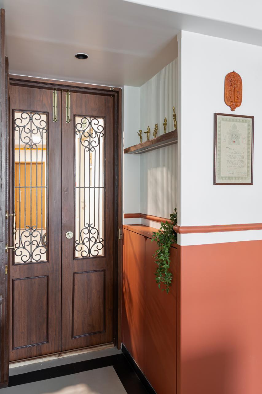 From the outset, the design intent was clear, to create a home that radiates warmth while resonating with the family’s cultural heritage. The architects, Ar. Disha Nayar and Ar. Umal Patil, embraced this vision with a restrained yet soulful aesthetic. Every inch of Ulka speaks of thoughtful curation: the presence of athungi tiles, classic wooden mouldings, and brass accents bring depth and authenticity to a modern layout. The home celebrates nostalgia without losing touch with the now, bridging old-world charm and present-day simplicity.