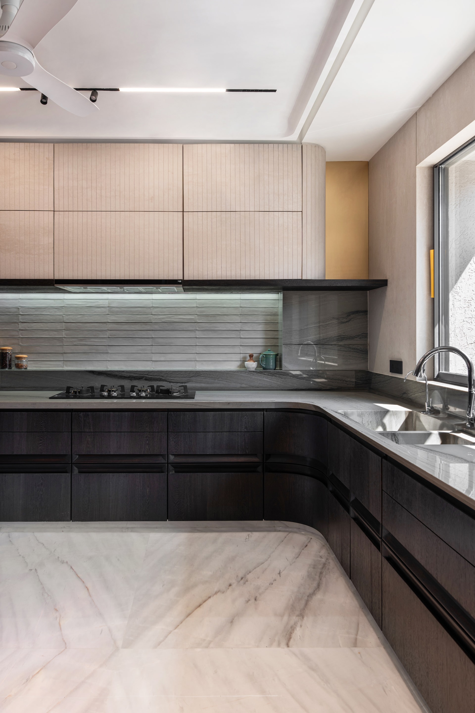 In creating the interior for this traditional Indian nuclear family, the designer embarked on a journey that masterfully bridges tradition and progress. The household, brimming with the vitality of two young boys, required a spacious and versatile kitchen that could cater to their constant activity. This socially engaged family, led by a skilled homemaker, provided a clear vision that aligned seamlessly with the desire for a modern reinterpretation of understated materials. The resulting design focuses on a warm and functional home, with the kitchen at its heart, blending culinary traditions with contemporary living. Contemporary elements like rich wood, intricate brassware, and handcrafted textiles provide a bridge between the past and the future, creating a space for family gatherings, learning, and culinary creativity. This design acknowledges the family’s deeply rooted values while embracing the evolving dynamics of their daily life. The outcome is a harmonious fusion of tradition and progress, where heritage and modernity coexist in perfect equilibrium, truly reflecting the essence of this exceptional family.