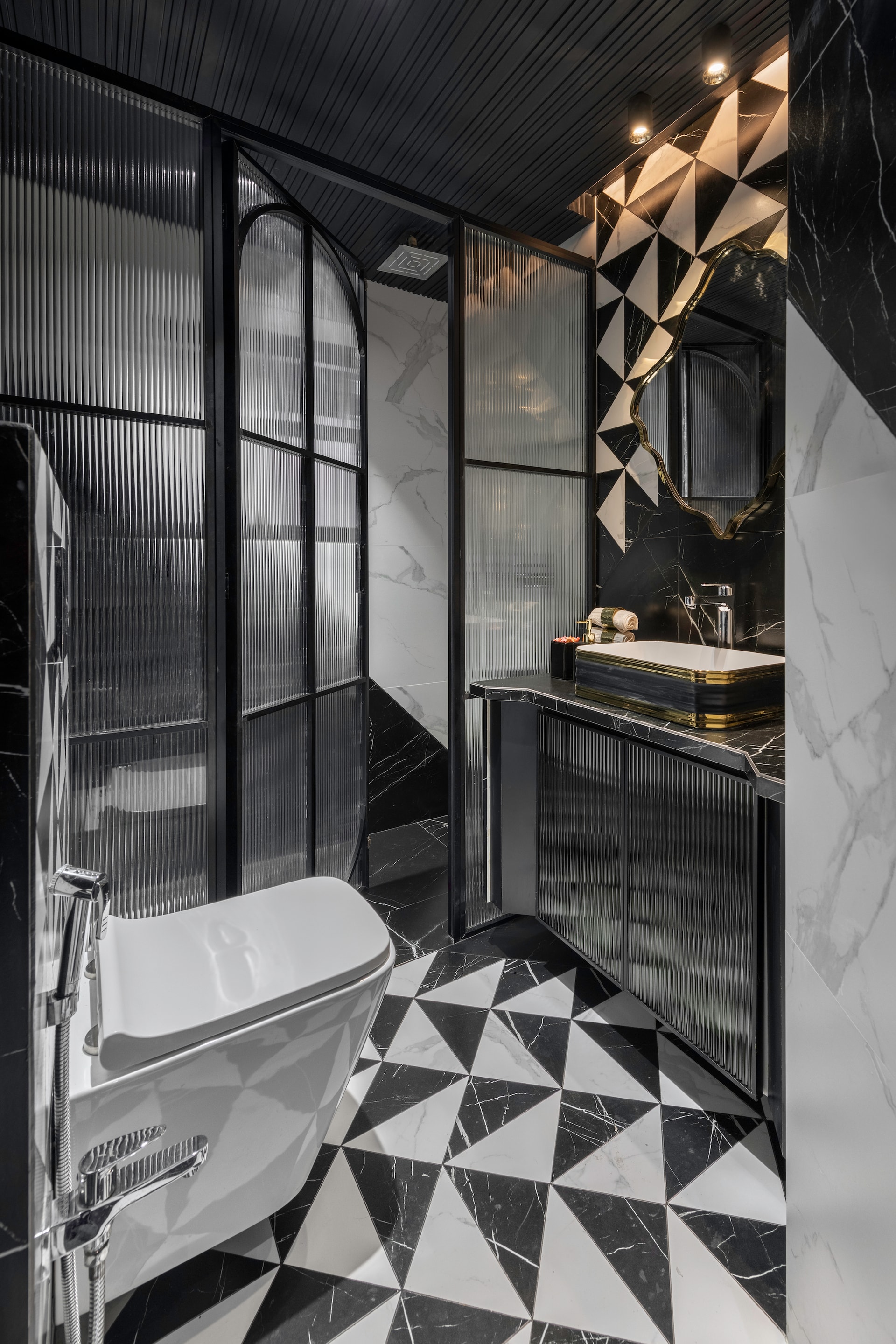 One project that particularly stands out in their portfolio is “An Arched Affair,” a recently completed project in Mumbai. This space presented a unique set of challenges, especially in designing a monochrome washroom in a geometric style. The intricate work involved aligning small cut pieces with larger tile sections to achieve a cohesive and sophisticated look. It was a task that required not only a keen eye for detail but also a lot of patience and precision. “With a lot of determination and skill control, we could achieve the same with finesse and perfection,” they reveal, showcasing their commitment to quality and craftsmanship.