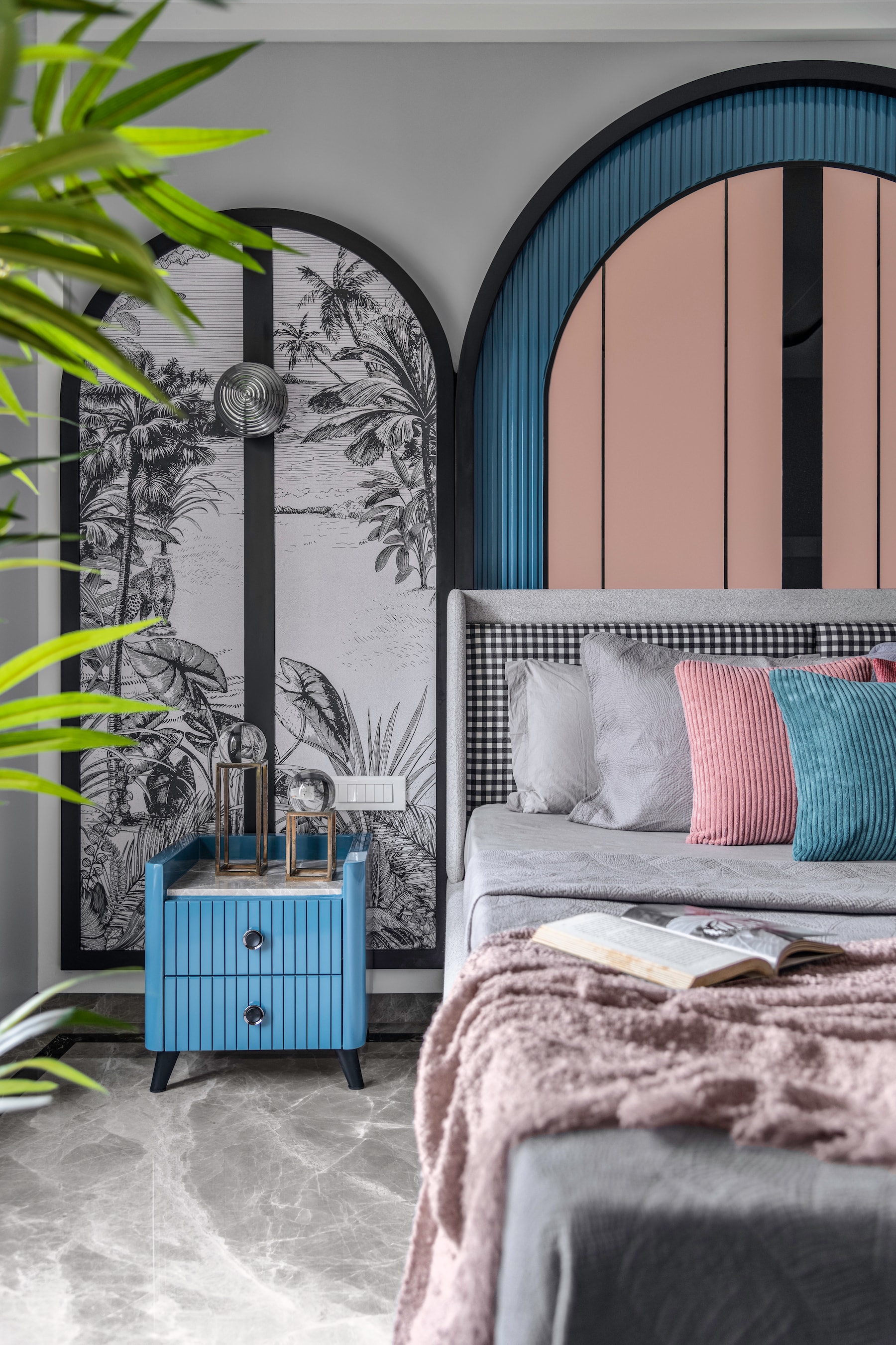 Balancing functionality with creativity is a challenge that Ratish and Vidhi tackle with extensive research and development. “Creativity never takes a backseat!” they exclaim. They embrace playful elements in their designs, such as the monochromatic angular flooring pattern and the bold vermillion red storage unit in “The Arched Affair.” These whimsical touches, combined with their love for customised monochromatic wallpapers and arched forms, define their signature style and set them apart from other designers.