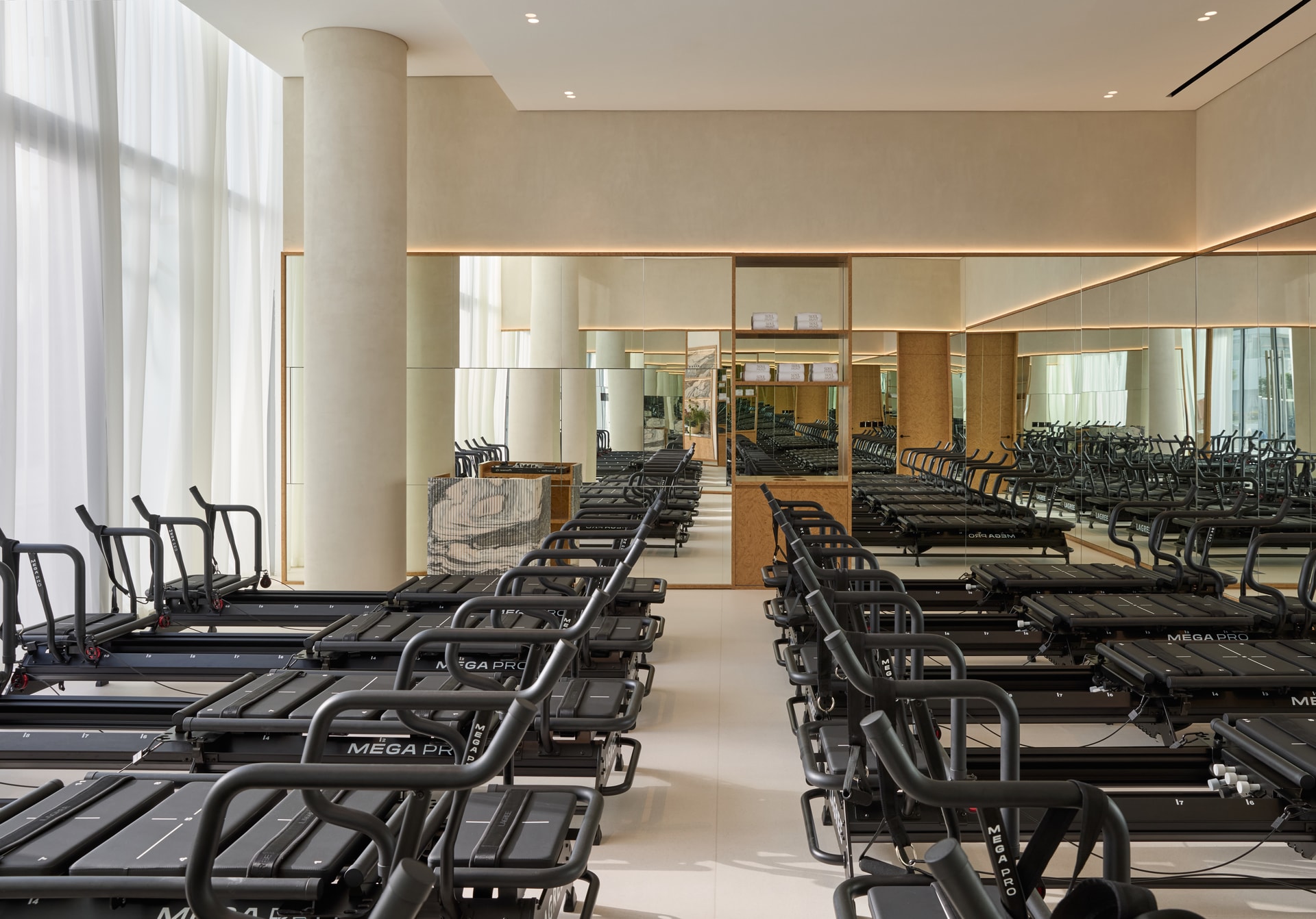 Among the studio’s recent projects, the Soul Movement Pilates Studio in Dubai Design District holds particular significance. The vision was to create a wellness environment that felt calm and grounding while still supporting the high-energy nature of Lagree workouts.
